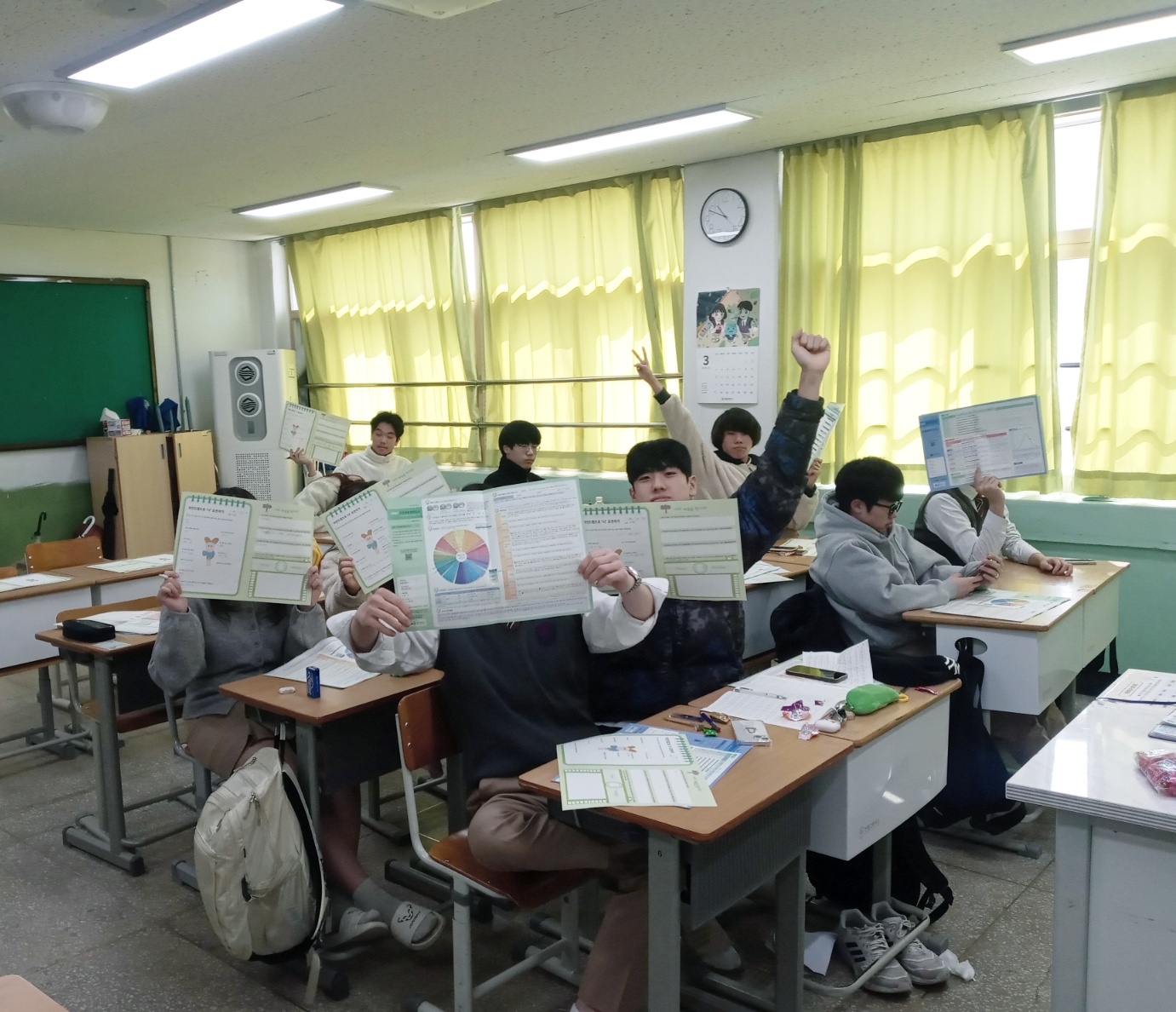 학생들이 자신이 누구인지 어떤 사람인지를 찾게 도와주는 집단상담을 진행한 사진입니다.