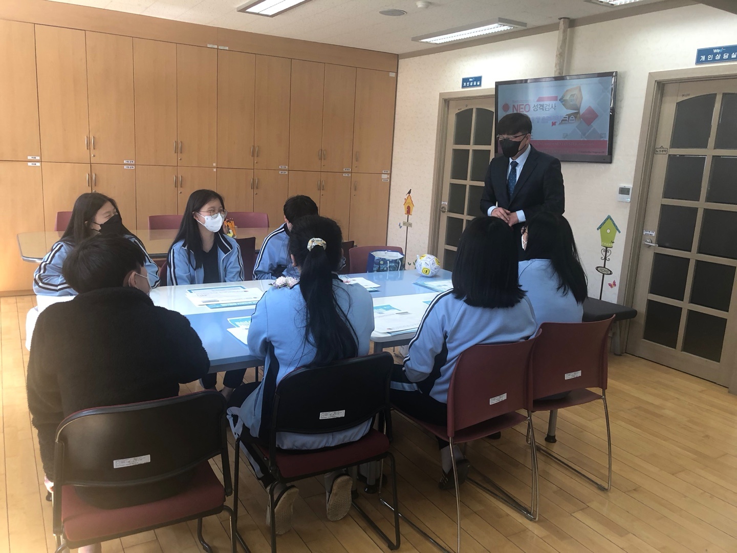 학생들이 자신이 누구인지 어떤 사람인지를 찾게 도와주는 집단상담을 진행한 사진입니다.